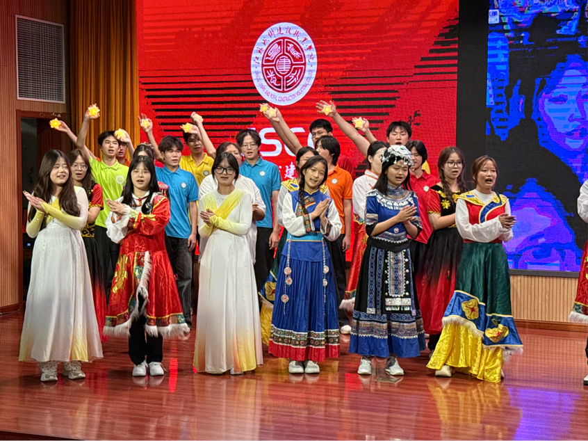 活动伊始,造价2503班率先登场,一曲《我和我的祖国》以整齐的和声、饱满的情绪拉开帷幕,青年学子眼中的热忱与旋律里的深情相融,迅速让现场浸润在浓厚的爱国氛围中。各班级随后依次亮相,演绎亮点纷呈:造价2501班演绎《百年红船》则尽显红色厚重,学子们以沉稳声线勾勒红船启航的峥嵘岁月;物管2503、2504班合并带来的《相亲相爱》堪称全场“视觉与听觉双绝”——学子们身着维吾尔族、藏族、蒙古族等各族特色服饰,既将“管理学子一家亲”的凝聚力具象成动人音符,更生动诠释了“中华民族一家亲”的深厚情谊;房管2501、2502班演唱的《如愿》更添创意巧思——学子们在悠扬旋律中融入精心编排的手势舞,指尖起落间或拼成“心”形传递温情,或化作“翅膀”象征理想,柔美动作与清澈歌声相得益彰,让舞台充满青春灵动的气息。此外,《我和我的祖国》《我爱你中国》等经典曲目也轮番上演,不同的编排与演绎,共同勾勒出青年学子传承红色基因、勇担时代使命的精神风貌。学子们还巧妙融入朗诵、队形变换等形式,让歌声不仅是情感的表达,更成为一堂生动鲜活的思政教育课。