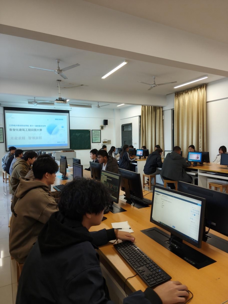 为全面贯彻落实我校“三色文化”育人理念,强化赛教融合,进一步增强学生核心竞争力,11月5日,由管理工程学院承办的“数智化建筑工程识图大赛”在4211实训室圆满落幕。本次大赛旨在通过数智化技术手段,切实提高土木建筑类专业学生的识图与应用能力,激发学生的创新思维,同时为下一年度江苏省职业院校“建筑工程识图”赛项储备坚实力量。