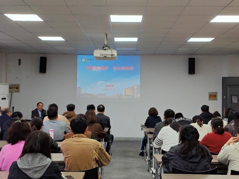 讲座聚焦“如何撰写一份优秀的科研申报书”。陈寿根首先指出,积极参与课题申报对教师专业成长、职称晋升以及推动学院学科建设具有重要意义。随后,他结合自身丰富的评审与研究经验,围绕选题、积累、申报、研究与应用五个关键要素,系统阐述了课题申报的整体思路与实操要点。他强调,选题应紧密对接国家政策导向与学科前沿;日常积累重在多读、多思、多总结,夯实研究基础并保持持续的问题意识;申报环节需精准把握项目指南精神,科学设计研究内容,突出创新点与可行性;研究过程要注重方法规范与数据支撑,同时加强团队协作与过程管理。在互动环节,青年教师积极提问,围绕讲座内容及项目申报中可能遇到的问题,与陈寿根展开了热烈交流。最后,蒋丽琼和解路分别作总结发言。蒋丽琼代表学院向陈寿根表达了诚挚感谢,并指出本次讲座对未来科研项目申报具有重要的指导意义。解路鼓励广大教师积极关注并申报更多高质量课题,持续提升科研能力。
