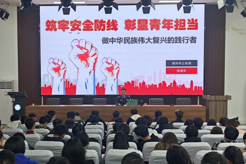 为全面深化校园安全教育,将党建共建优势切实转化为育人实效,11月19日下午,管理工程学院于静一楼223报告厅面向房地产经营与管理、建筑经济信息化管理专业学生开展了“筑牢安全防线,彰显青年担当——做中华民族伟大复兴的践行者”主题讲座。本次活动特邀常州市公安局人民警察实战训练办公室三级高级警长、学院新聘政治辅导员徐俊华担任主讲嘉宾。