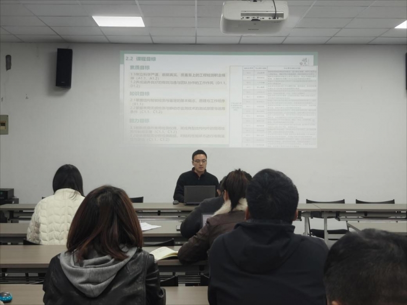 首先,工程造价专业群老师陈波解读了建设工程管理专业拓展课《结构智能检测与鉴定》,课程涵盖结构检测鉴定概论、常用结构检测方法、结构变形监测及房屋风险鉴定四大模块,采用项目教学法、任务驱动法与讲授法相结合的模式,让学生在完整项目实践中熟练掌握无损检测、数据采集及结构鉴定等核心技能,既夯实了工程结构安全领域的专业根基,更提升了其工程实际问题解决能力与智能检测技术应用能力。随后,工程造价专业群老师谢丹介绍了群内实践课程《岗前训练》,课程以造价员、测量员岗位职业能力培养为核心,聚焦BIM软件与数字化测量仪器应用,设置数字全过程造价管理实训、数字测量技术实训两大教学内容,考核体系采用“三维多元”评价模式,由成果评价(40%)、答辩评价(20%)和过程性评价(40%)构成,旨在实现对学生的综合能力进行科学评估,从而精准对接岗位需求。
