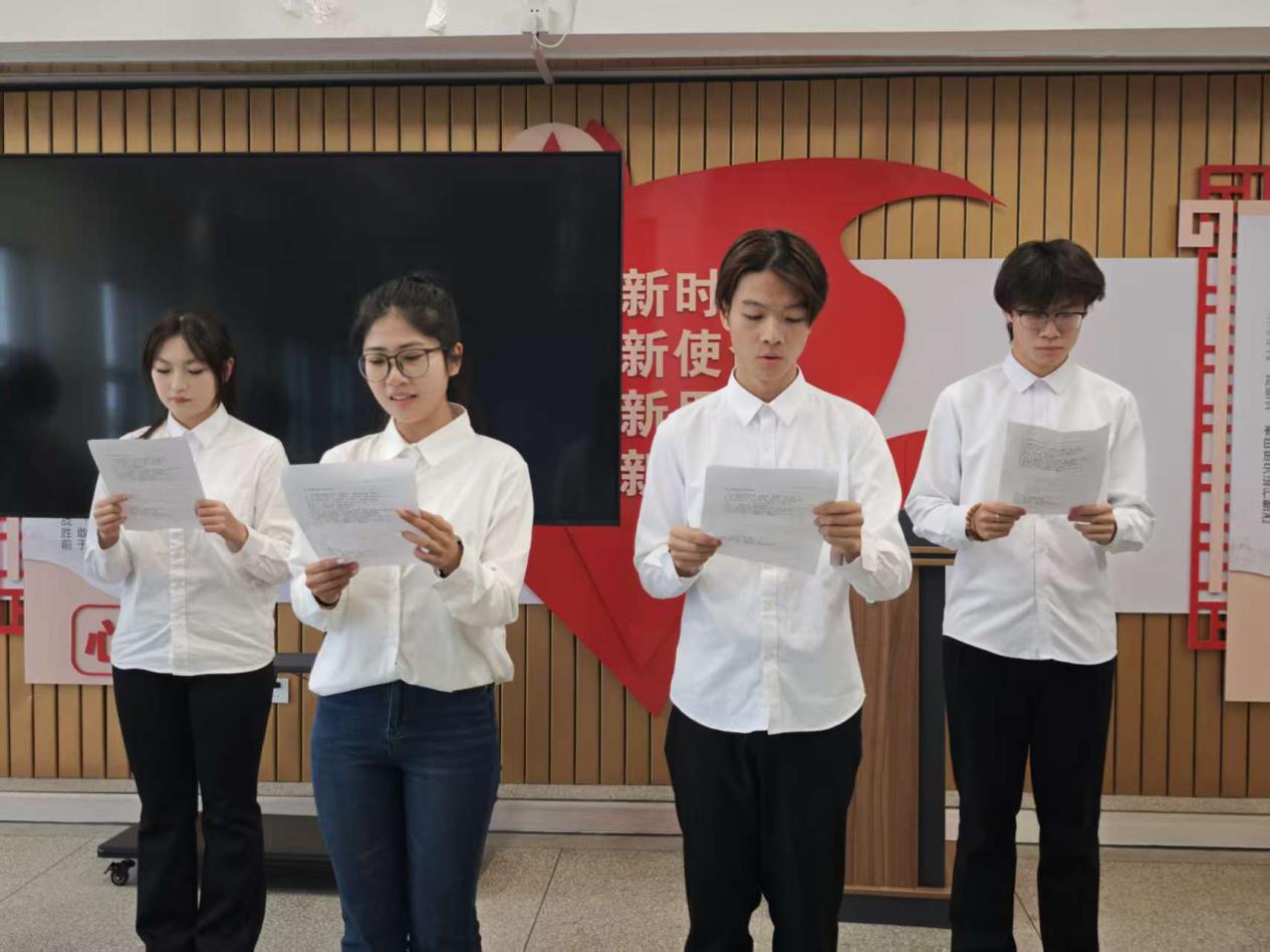 为深入学习贯彻党的二十大和二十届二中、三中、四中全会精神,纪念中国人民抗日战争暨世界反法西斯战争胜利80周年。管理工程学院于12月2日在27栋群团活动室举办了“明志杯”朗诵选拔赛,学院众多学子积极参与,辅导员周九一、顾笑、赵倩、鲍鸿飞、朱易宁、郭笑生担任评委参加。