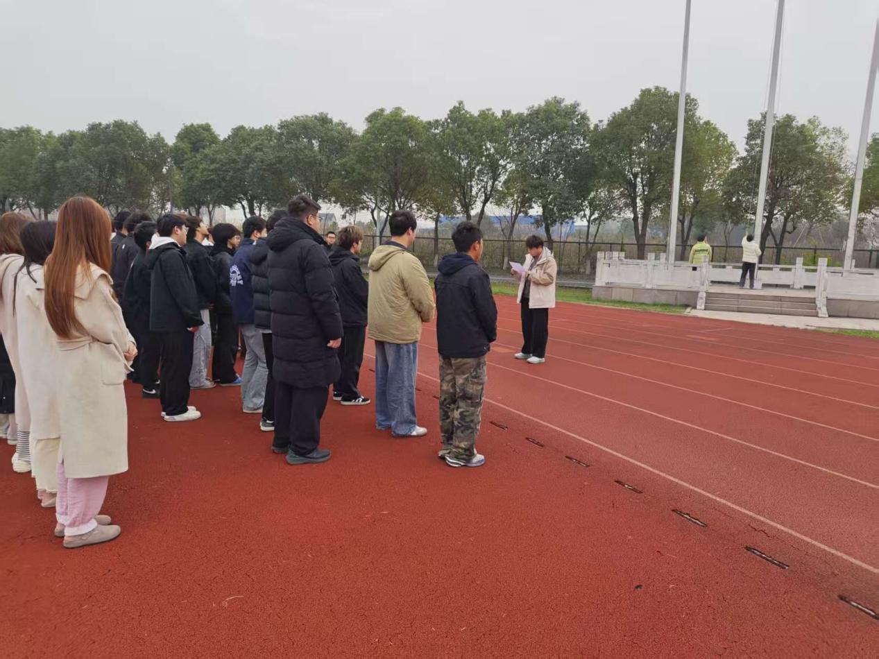 清晨的操场沐浴在朝阳之中,师生们精神饱满、列队整齐。伴随着雄壮的国歌,五星红旗冉冉升起,全体师生庄严肃立,行注目礼,嘹亮的歌声中饱含着对祖国的深情热爱与对知行合一的坚定追求。升旗仪式结束后,班级团支书姜东林发表了题为《在实践中淬炼青春,在奉献中砥砺成长》的演讲。他结合同学们寒假社会实践的生动案例,深刻阐述了实践对于大学生成长成才的重要意义。辅导员王健凯指出,社会实践是青年学生了解国情、认识社会、锤炼本领的必修课,希望大家把课堂所学与社会大课堂紧密结合起来,在基层一线经风雨、见世面、长才干。话语真挚恳切,引发了在场师生的强烈共鸣。