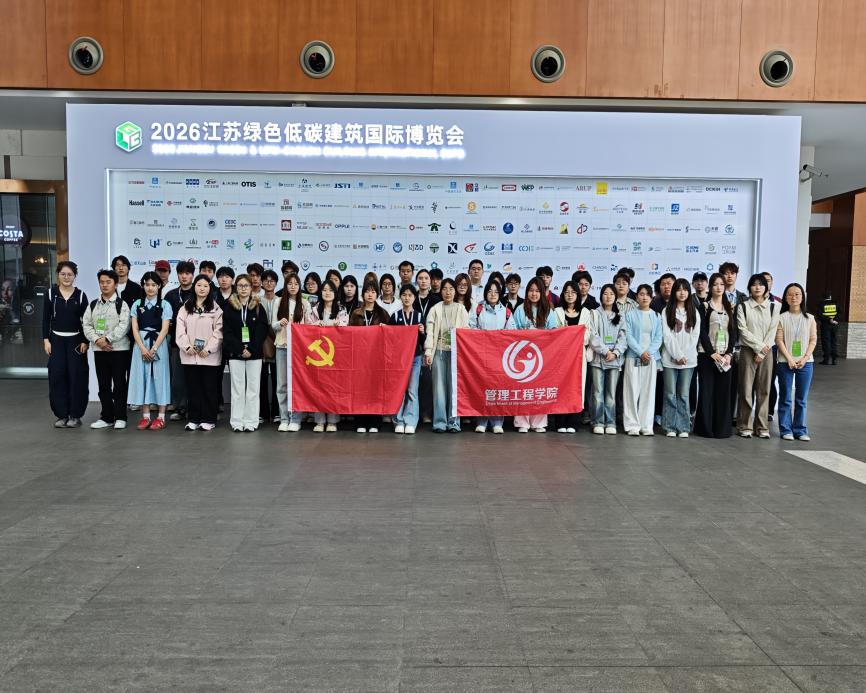为深化入党积极分子思想引领,强化专业实践能力,搭建理论与实践衔接的桥梁,引导青年学子立足专业、勇担使命,4月11日,管理工程学院辅导员许靓、潘雅组织“红檐·星火”班全体在校入党积极分子,前往南京参加2026江苏绿色低碳建筑国际博览会,开展主题研学实践活动,在沉浸式体验中感受行业前沿、锤炼青春本领。